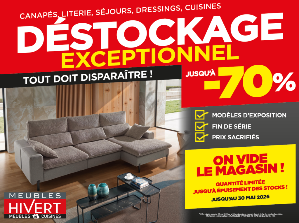 Bienvenue dans l’univers du mobilier d’intérieur de votre magasin proche de chez vous, dans la Sarthe. Depuis toujours, nous avons à coeur de vous proposer des collections originales, de grande qualité, fabriquées en France et en Europe. Mobilier contemporain ou classique, tendance ou traditionnel, vous trouverez au sein de notre magasin les conseils de notre équipes pour choisir parmi les collections adaptées à vos besoins et vos goûts et qui sauront rendre votre intérieur unique et combler vos envies. Découvrez dès à présent les nouveautés de Salons (canapé, fauteuil, table basse, bibliothèque, meuble TV), Séjours (table, chaise, buffet, vaisselier), Chambres (lit, chevet, armoire, commode, dressing, matelas, sommier) et Meubles d’Appoint (console, guéridon, meuble d’entrée)…